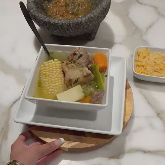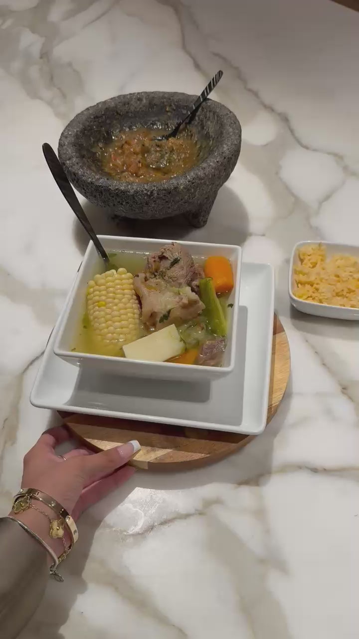 COMES WITH SIDES: RED RICE, SALSA DE MOLCAJETE, CORN TORTILLAS.