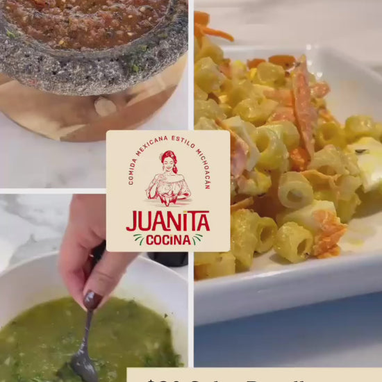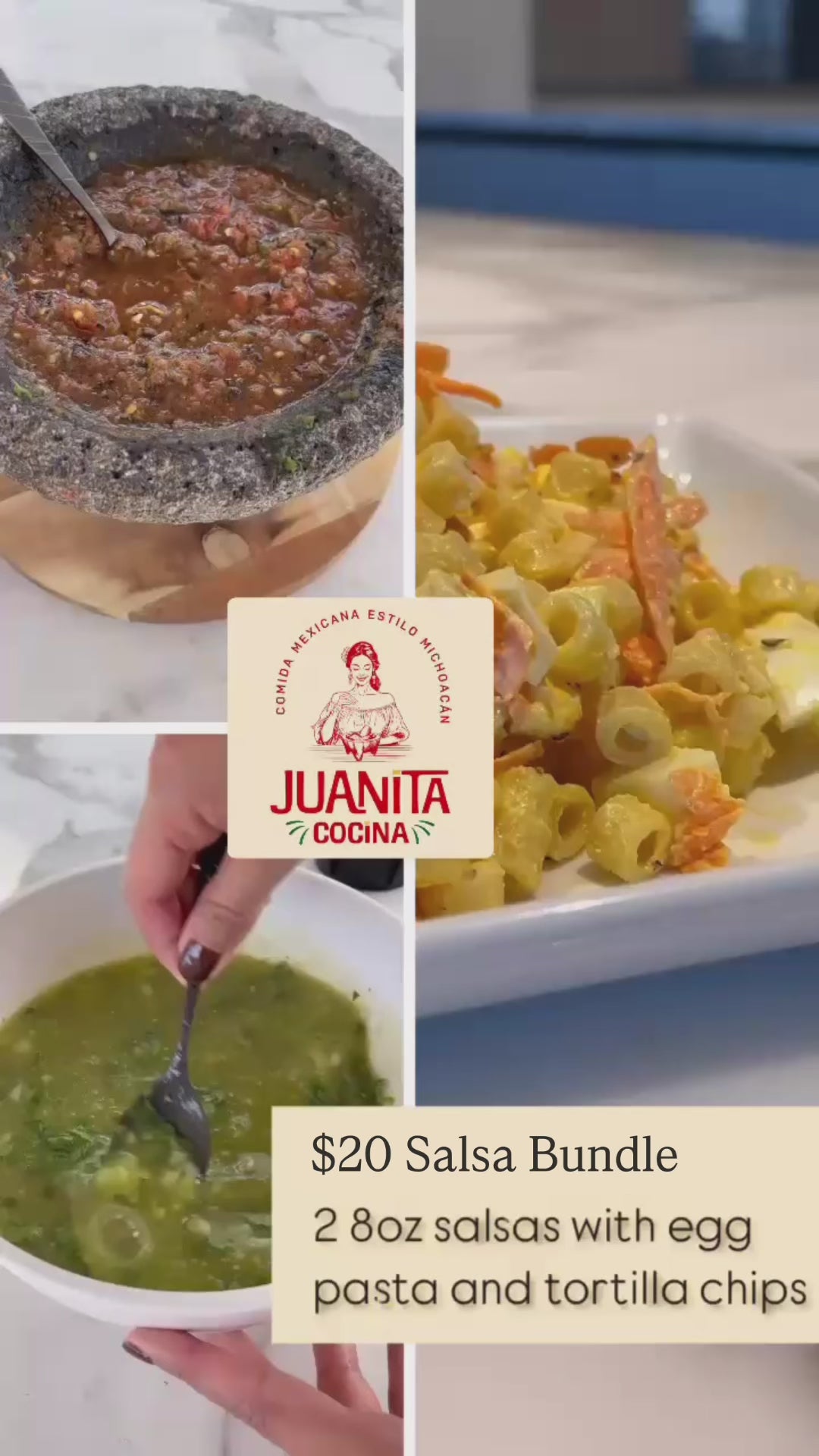 Salsa de molcajete, Salsa verde, Pasta de huevo, & tortilla Chips