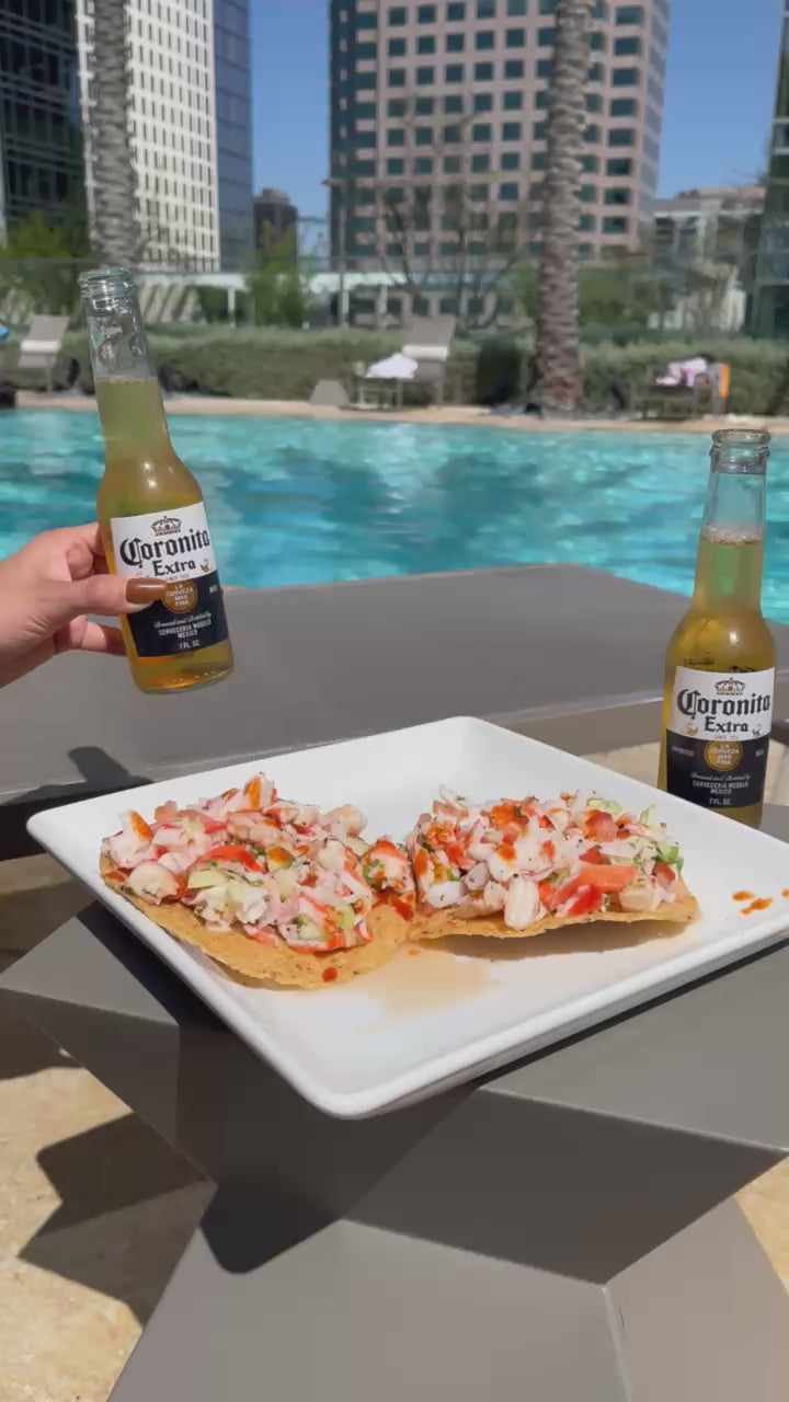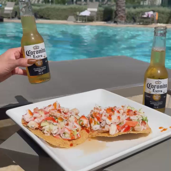 FRESH SHRIMP COOKED IN LIME JUICE AND SWEET CRAB MEAT ENHANCED BY A BLEND OF HERBS AND SPICES ALL RESTING ON A CRISPY TOSTADA.
